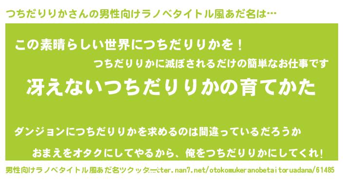 | 女子向けラノベタイトル風あだ名 | 『シンデレラつちだりりか家の靴箱館』 |