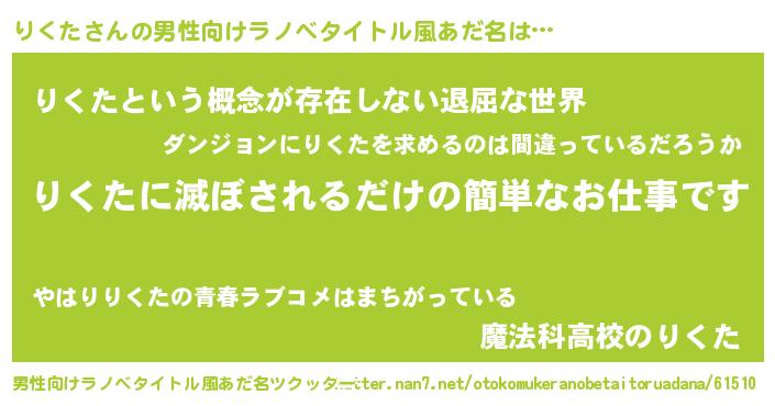 | 意味不明あだ名 | 『永久保存りくた』『自称りくた』 |