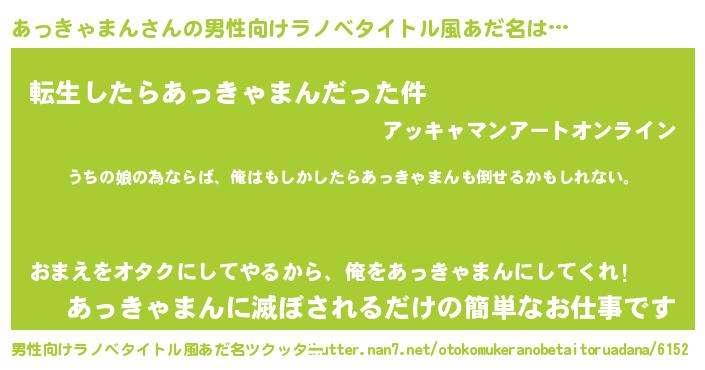 | 女子向けラノベタイトル風あだ名 | 『あっきゃまんの婚約者』 |