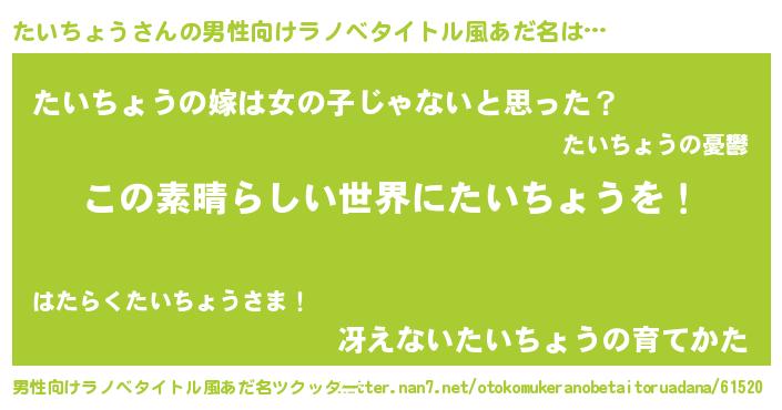 | 意味不明あだ名 | 『住所不定無職たいちょう(40歳)』 |