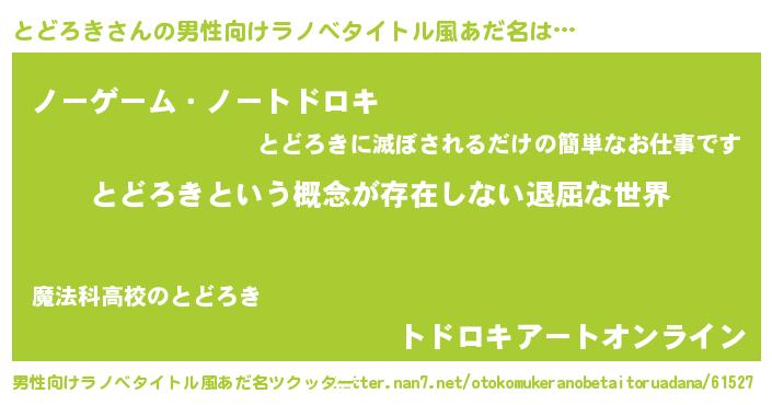 | 女子向けラノベタイトル風あだ名 | 『異世界で失敗しない100のとどろき』 |