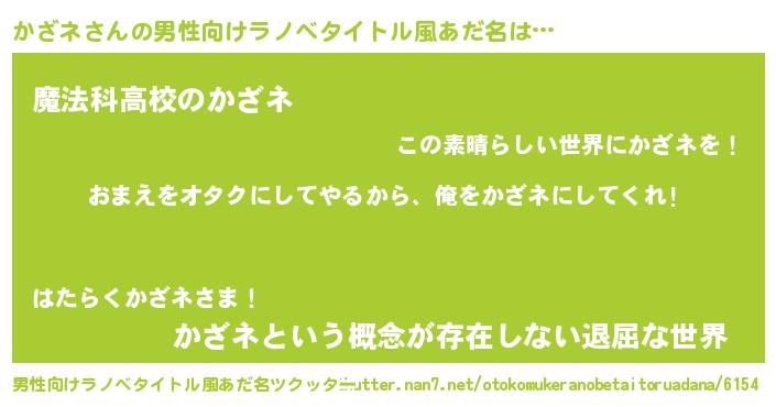 | 女子向けラノベタイトル風あだ名 | 『かざネ恋絵巻』『首の姫と首なしかざネ』 |