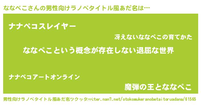 | 女子向けラノベタイトル風あだ名 | 『異世界で失敗しない100のななぺこ』 |