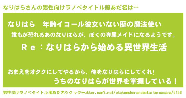 | 女子向けラノベタイトル風あだ名 | 『なりはらストレイドッグス』 |