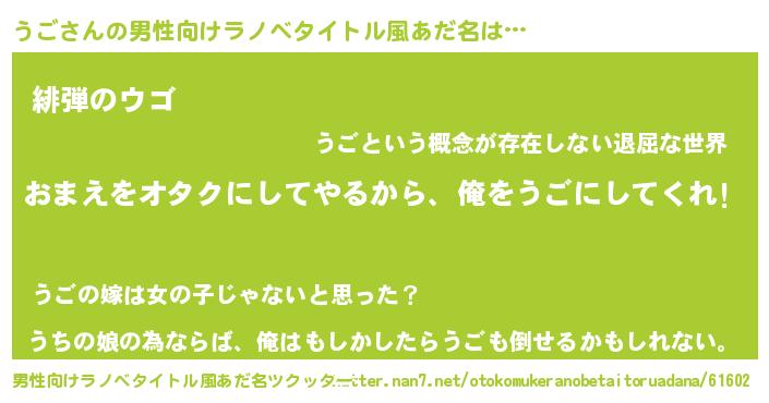 | ヘコむあだ名 | 『豆乳』『うご(小並感)』『うご太郎』 |