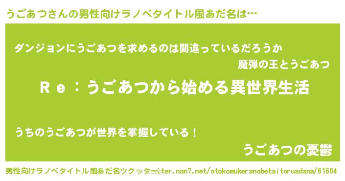 | 女子向けラノベタイトル風あだ名 | 『闇のうごあつ』『うごあつは平凡を望む』 |