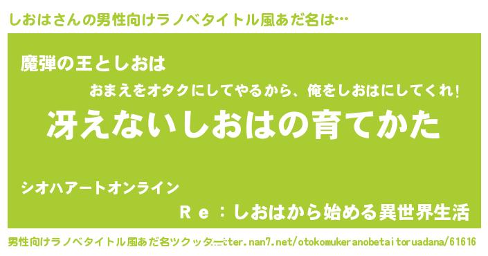 | 女子向けラノベタイトル風あだ名 | 『シンデレラしおは家の靴箱館』 |