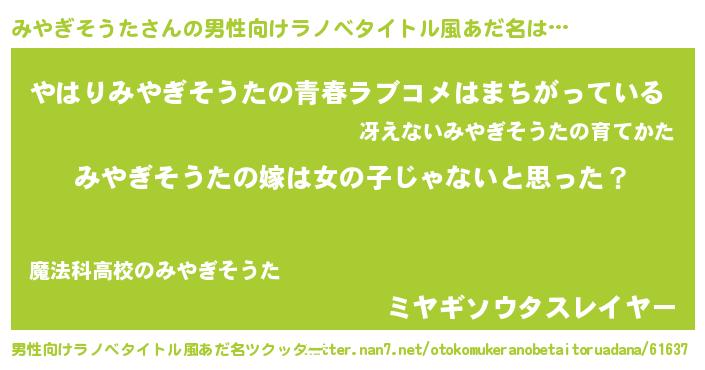 | ポケモン風あだ名 | 『ヒミヤギソウタ』『ミヤギダネ』 |