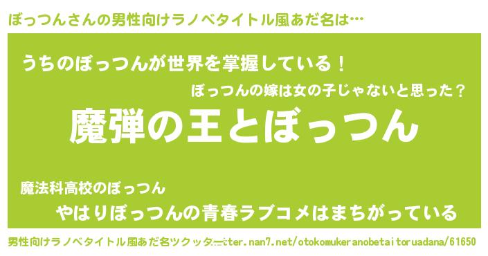 | ヒーロー風カッコイイあだ名 | 『仮面ボッダー』『ウルトラぼっつんマン』 |