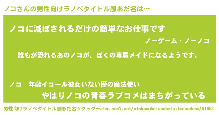 | ヘコむあだ名 | 『ノコ(笑)』『牛乳』『ノコっ子』 |