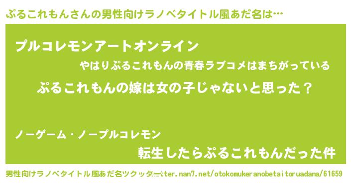 | 女子向けラノベタイトル風あだ名 | 『ぷるこれもん様がみてる』 |