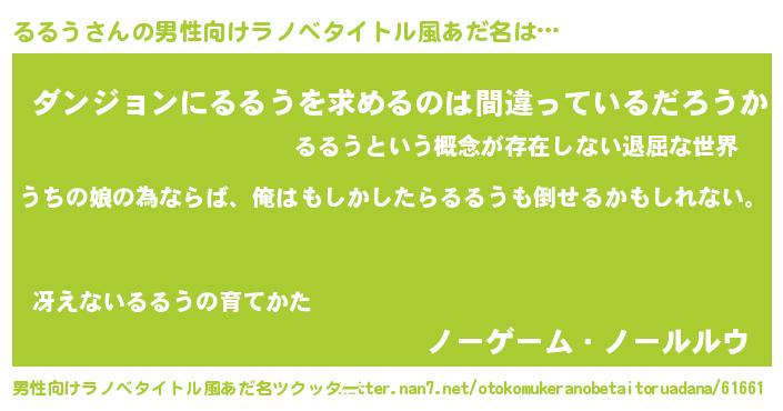 | 女子向けラノベタイトル風あだ名 | 『るるう伯爵の花嫁』『るるう恋絵巻』 |
