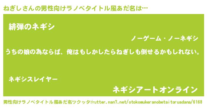 | 女子向けラノベタイトル風あだ名 | 『ねぎしの婚約者』『ねぎし恋絵巻』 |
