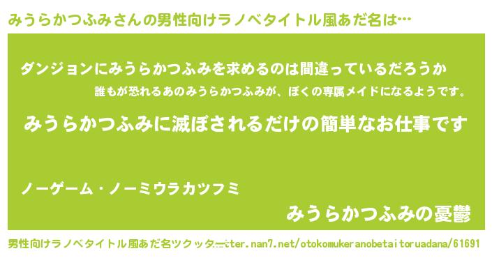| ポケモン風あだ名 | 『ミウゴンZ』『ヒミウラカツフミ』 |