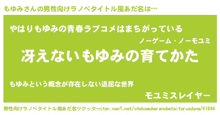 | ファンタジー風あだ名 | 『カークモユラー』『エターナルモユミー』 |