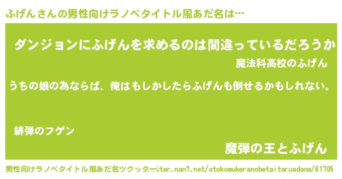 | 女子向けラノベタイトル風あだ名 | 『ふげんの婚約者』『ふげんアンティーク』 |