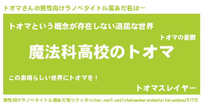| 女子向けラノベタイトル風あだ名 | 『トオマアンティーク』 |