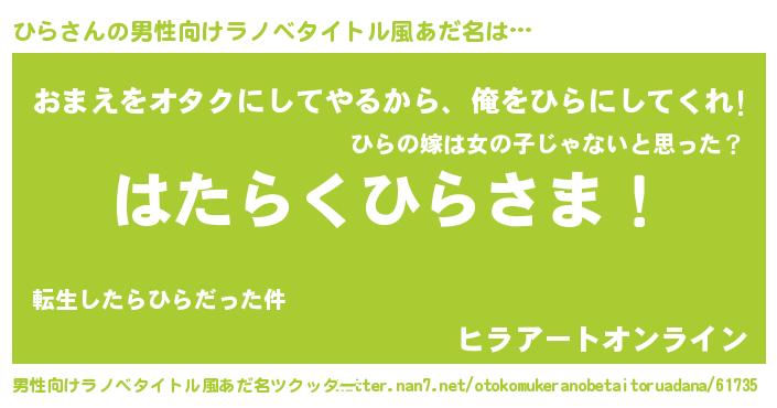 | 女子向けラノベタイトル風あだ名 | 『首の姫と首なしひら』『ひら様がみてる』 |