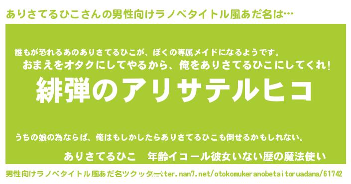 | 意味不明あだ名 | 『永久保存ありさてるひこ』 |
