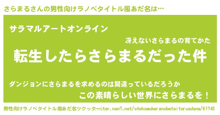 | 胡散臭い通販商品みたいなあだ名 | 『モテモテ間違いなしブレスレット…その名も「さらまる」』 |