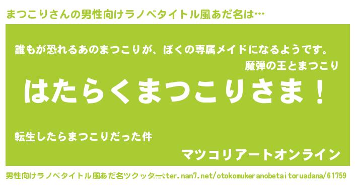 | 胡散臭い通販商品みたいなあだ名 | 『絶対に幸福をもたらす招き猫…その名も「まつこり」』 |