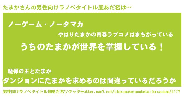 たまかさんの男性向けラノベタイトル風あだ名をツクッター!