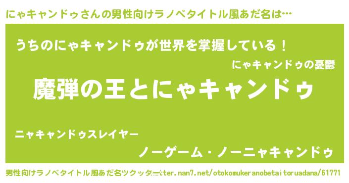 | 意味不明あだ名 | 『住所不定無職にゃキャンドゥ(3歳)』 |