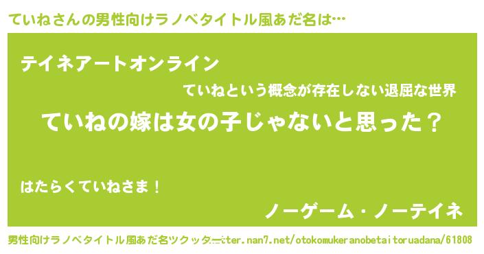 | 女子向けラノベタイトル風あだ名 | 『ていね様がみてる』『ていね恋絵巻』 |