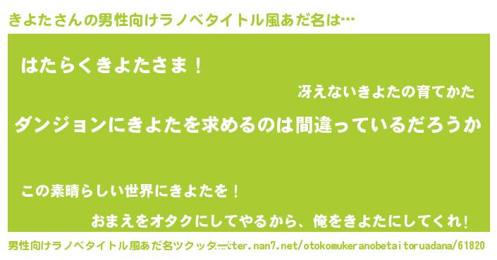 | 女子向けラノベタイトル風あだ名 | 『きよたは平凡を望む』『きよた恋絵巻』 |