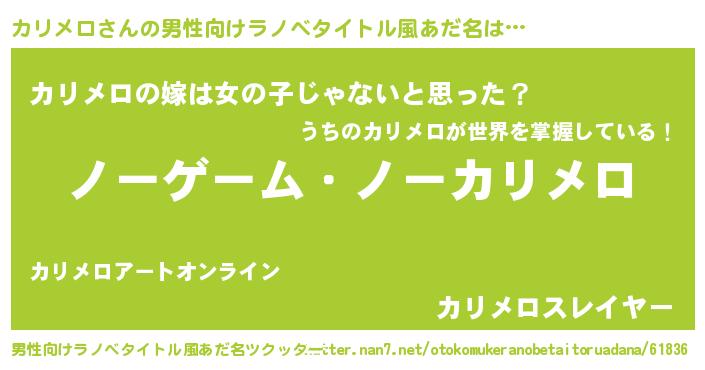 | ヘコむあだ名 | 『カリっ子』『カリもー』『なまこ酢』 |