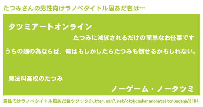 | ファンタジー風あだ名 | 『エターナルタツミー』『タツフェル』 |
