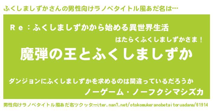 | 意味不明あだ名 | 『住所不定無職ふくしましずか(68歳)』 |
