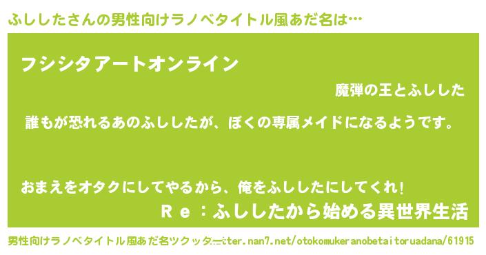 | ファンタジー風あだ名 | 『フシディッシュ』『フシフェル』 |
