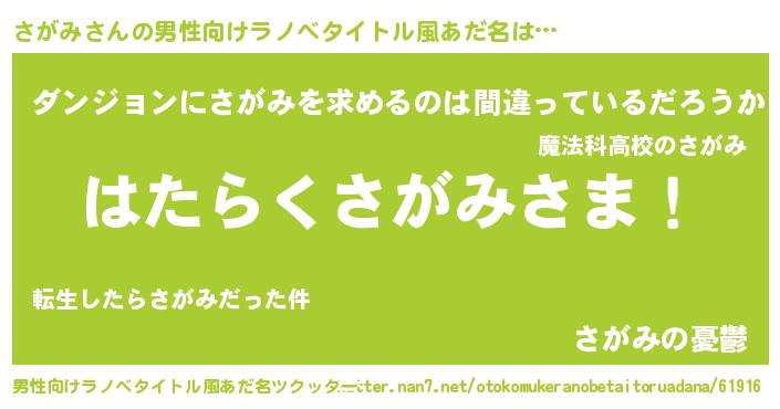| ヒーロー風カッコイイあだ名 | 『魔戒騎士サガ』『スーパーサガミ』 |