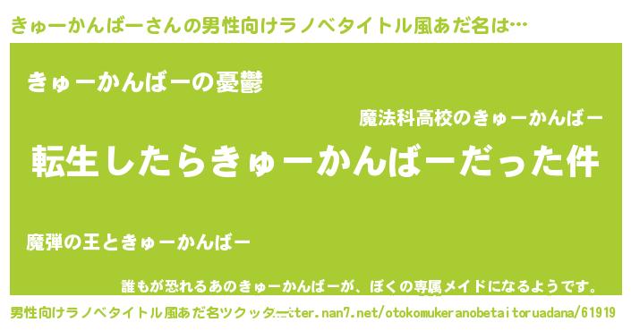 | ヘコむあだ名 | 『きゅふぇ~』『きゅーかんばー(小並感)』 |