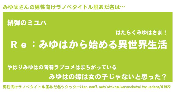 | ヒーロー風カッコイイあだ名 | 『サイバー戦士ミユハ』『幻影騎士ミユ』 |
