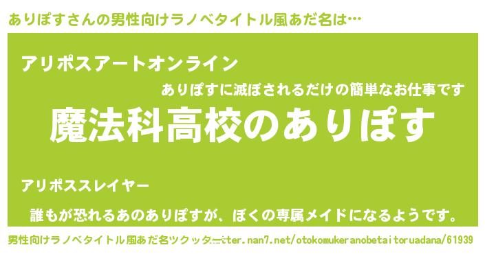 | 女子向けラノベタイトル風あだ名 | 『ありぽすなんてお断りですっ。』 |