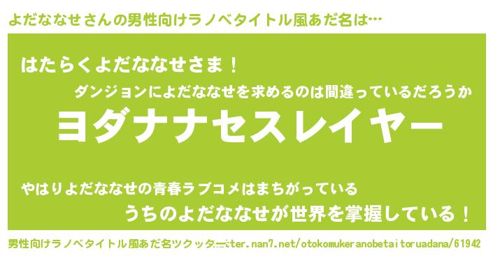 | ヒーロー風カッコイイあだ名 | 『暗黒騎士ヨダ』『天空の使者よだななせ』 |