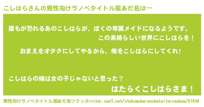 | ヒーロー風カッコイイあだ名 | 『愛の使者こしはら』『ネオコシハラ』 |