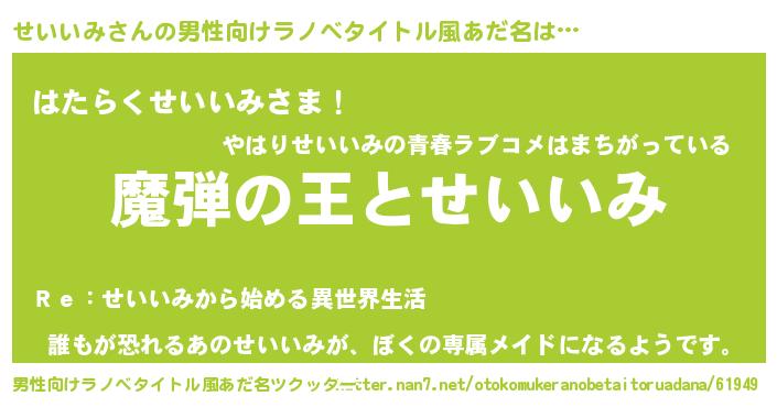 | ヒーロー風カッコイイあだ名 | 『仮面セイダー』『ネオセイイミ』 |