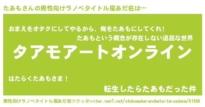| 胡散臭い通販商品みたいなあだ名 | 『億万長者になれる水晶球…その名も「たあも」』 |