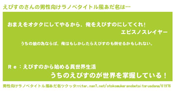 | 女子向けラノベタイトル風あだ名 | 『えびすのの婚約者』『闇のえびすの』 |