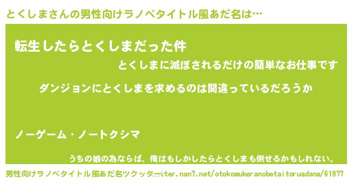 | ヒーロー風カッコイイあだ名 | 『暗黒騎士トク』『ウルトラとくしまマン』 |