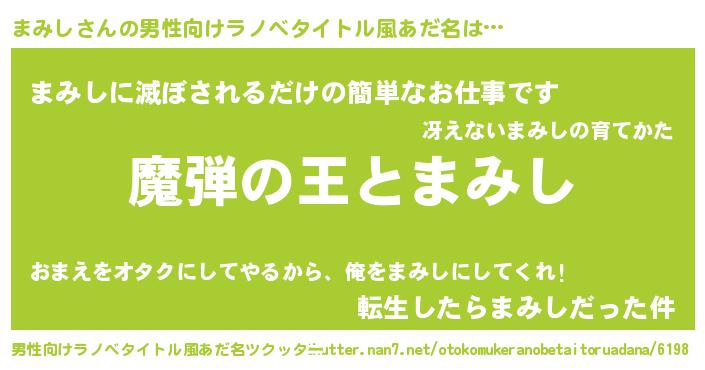 | 女子向けラノベタイトル風あだ名 | 『まみしが死なない童話 林檎のまみしの診療簿』 |
