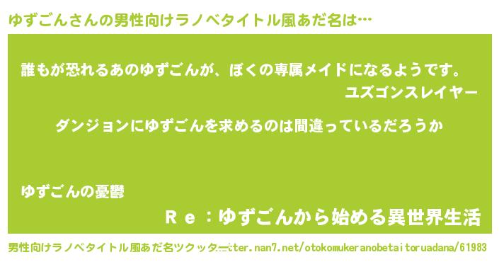 | 女子向けラノベタイトル風あだ名 | 『ゆずごんの卵を拾いまして』 |