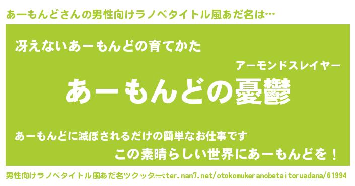 | 女子向けラノベタイトル風あだ名 | 『あーもんど姫と円卓の騎士』 |