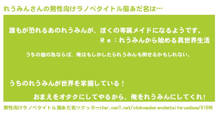 | 意味不明あだ名 | 『れうみんフォーエバー』『自称れうみん』 |