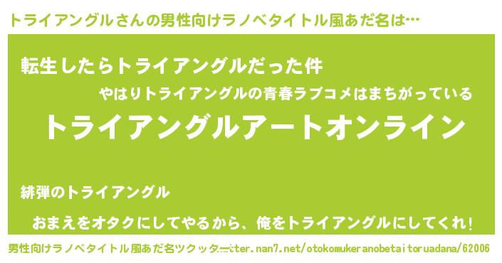 トライアングルさんの男性向けラノベタイトル風あだ名をツクッター!