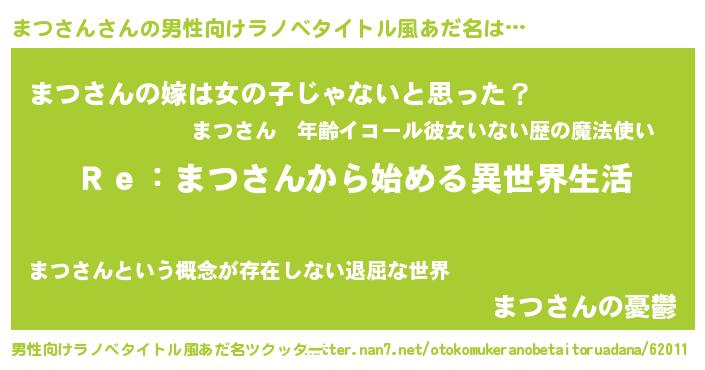 | 女子向けラノベタイトル風あだ名 | 『まつさんストレイドッグス』 |