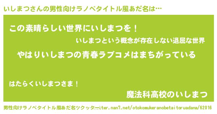 | 胡散臭い通販商品みたいなあだ名 | 『幸せが訪れる高級そうな絵画…その名も「いしまつ」』 |
